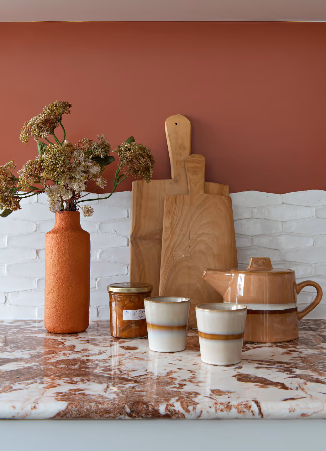 " Une reconfiguration profonde des pièces, l’intégration de matières nobles patinées par le temps (bois vieillis, pierre naturelle, zelliges…), un travail de menuiserie pro… un mobilier facile à vivre et des couleurs naturelles combinés à du noir … difficile de s’imaginer qu’un jour il y avait du linoleum au sol... "