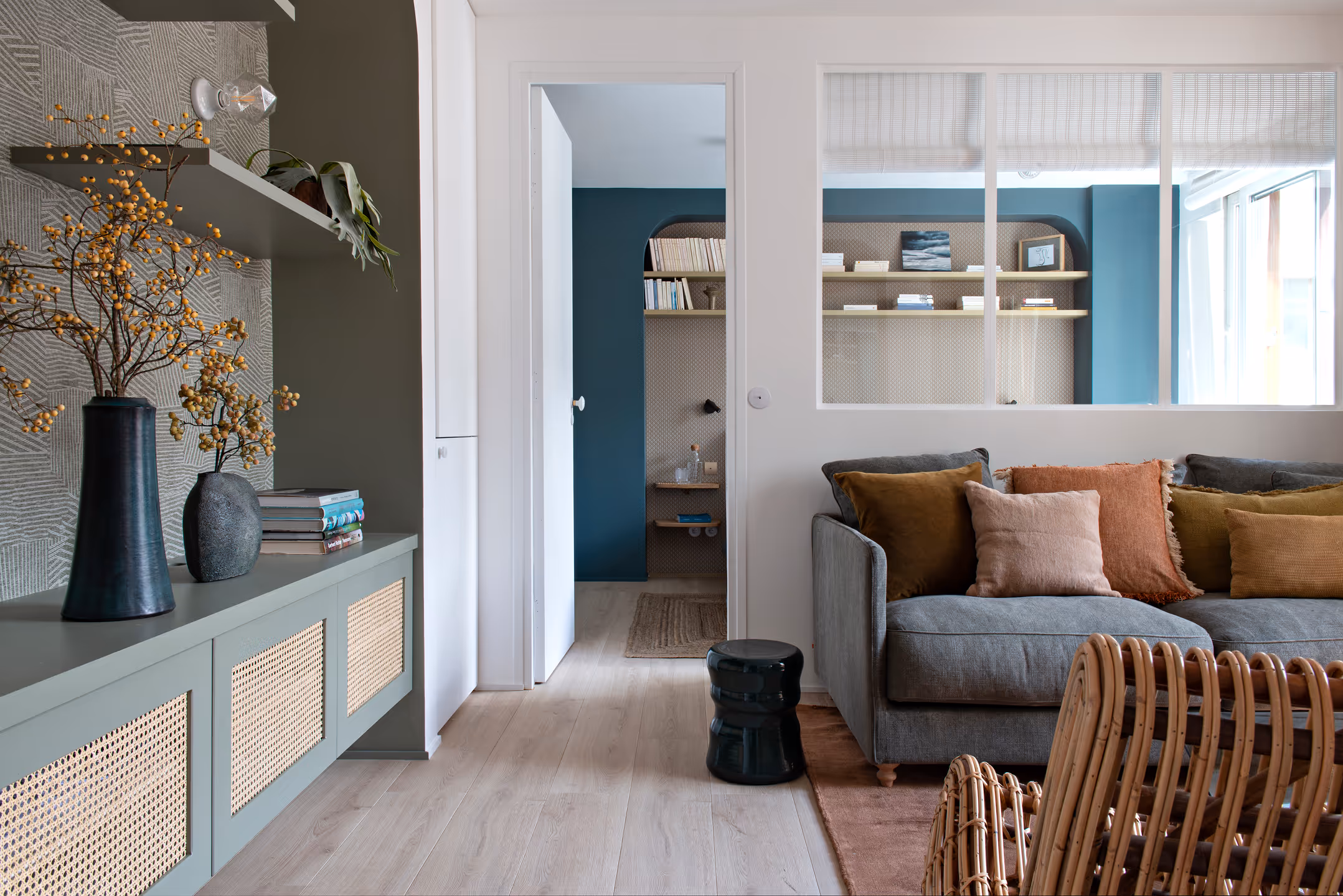 Le challenge : comment donner du caractère , du charme et de la chaleur à un appartement sans cachet ni spécificités ?