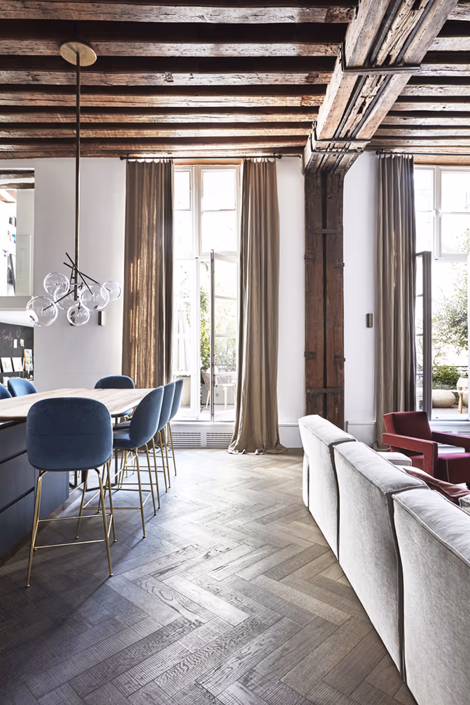 Le challenge : comment repenser cet appartement spectaculaire pour l’adapter à la vie d’une famille recomposée… sans en dénaturer la beauté historique ?