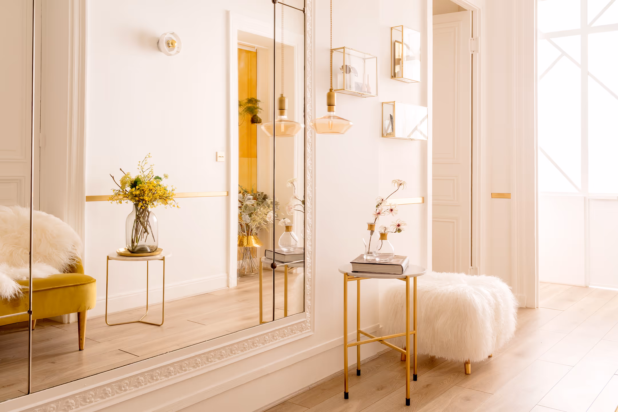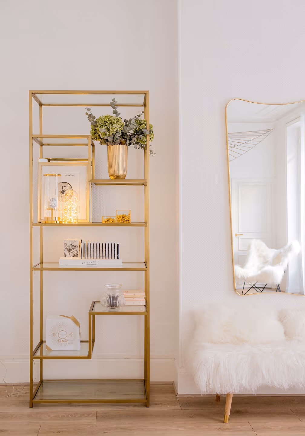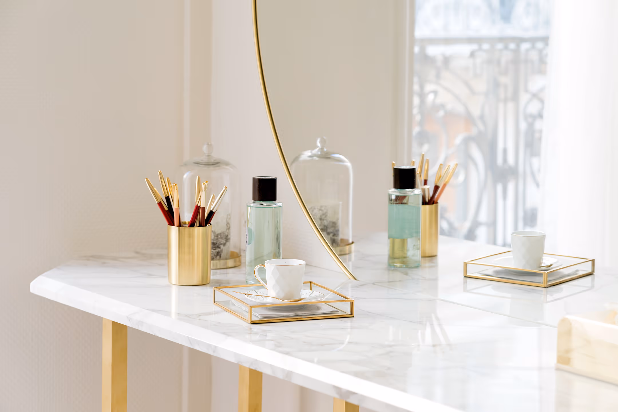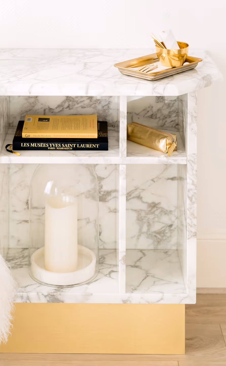 " Le raffinement des couleurs et matières exprime le positionnement exclusif de l’institut. Du mobilier sur mesure en marbre et laiton, une allure de boudoir années 30, du blanc avec des touches d’or, des miroirs et accessoires choisis avec précision… féminité et sérénité sont au rendez-vous… "