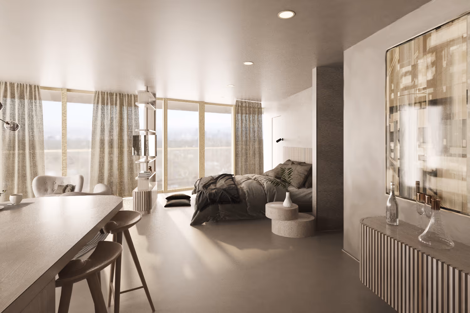 " Créer un écrin à la fois intemporel et dans l’air du temps – couleurs neutres, matières résistantes, design contemporain, avec un mobilier modulaire pouvant être adapté aux formes atypiques de chaque chambre. "